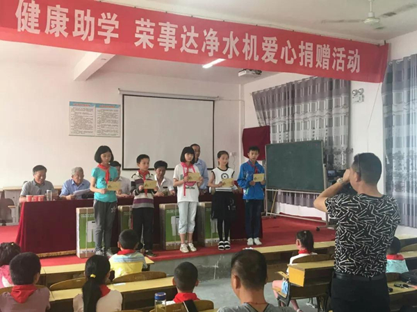 2018年6月1日,榮事達走進紅色革命老區——金寨縣,攜手金寨希望公益服務中心及地方公益協會共同發起“給山區孩子一杯水”——援建金寨中小學凈水設備公益活動。榮事達通過工程援建和設備捐贈的方式,為金寨縣所有中小學援建直飲水系統400多套,受到學生、學校、家長們的一致好評。該項目被全國文明辦評為“全國百佳公益項目”。