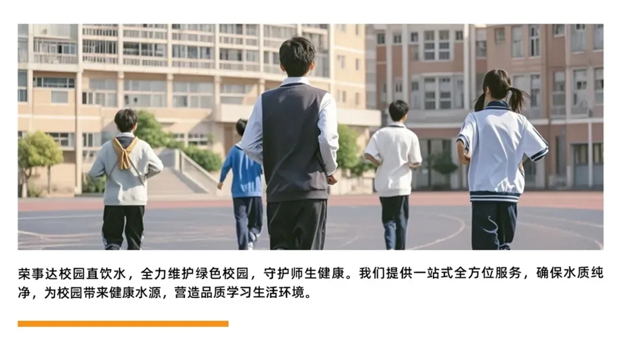 榮事達校園直飲水已為全國眾多幼兒園、小學、中學以及大學帶去健康好水,贏得了師生青睞。榮事達校園直飲水還可根據每所學校的具體需求量身定制直飲方案。從需求分析、方案設計、設備選型到安裝調試、后期運維,榮事達提供了一站式、全方位的服務,確保了直飲水項目的順利實施與高效運行。