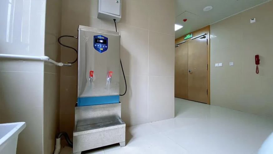 設備配有高清數顯面板,操作便捷、水溫清晰可見,方便老年人及護工輕松使用;優質發熱管,實現快速加熱,持續輸出熱水,滿足老年人日常泡茶、沖藥等多種用水需求。同時防干燒保護裝置杜絕安全隱患,為養老中心筑起堅實的飲水安全防線。