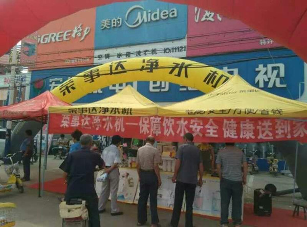 為了讓榮事達品牌形象深入人心,讓凈水機走進更多鄉鎮家庭,榮事達的工作人員在超市、電器商店等網點展開促銷,墻體廣告、大篷車、廣播、帳篷等宣傳方式齊上陣,全方位進行產品推廣。據了解,榮事達凈水機中國風系列之紅梅純水機和新上市的自吸式壁掛加熱RO一體機在鄉鎮市場備受青睞,其內部自吸增壓的設置攻克了三四級市場水壓不足、不穩的問題,除此之外,簡單便捷的使用方法和較高的性價比也是吸引消費者購買的主要原因。