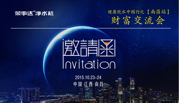 •     2015年10月23日--24日,榮事達凈水機健康中國行·江西南昌站財富交流會將隆重舉行。會議將深刻剖析終端經典案例的實操方法、迅速拓展經銷網點的實戰策略、榮事達成為樣板市場第一品牌的運作經驗,并將重點解析榮事達獨創的T7營銷模式。