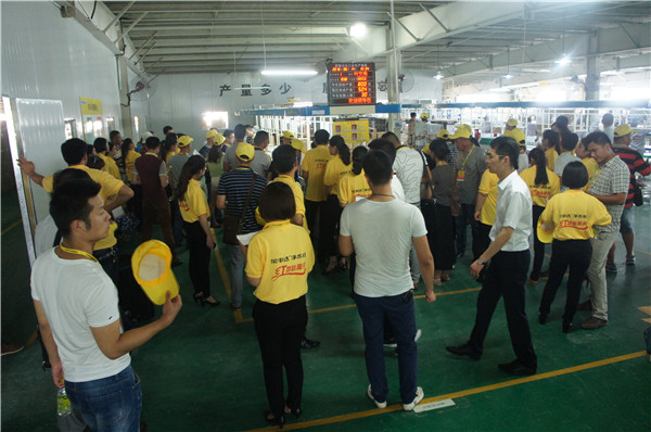 14日下午,渠道開發部張總給與會學員作了企業文化講座,介紹了品牌發展歷史及公司研發、生產、銷售、服務等方面的發展現狀,并展示了公司取得的榮譽資質以及積極踐行的公益活動。之后,在渠道開發部王部長等一行工作人員的帶領下,廣大學員對生產園區進行實地考察,見證公司規模實力。學員們在廠房體驗了先進生產環境,通過參觀生產線、檢測線、包裝區,切身感受榮事達生產、檢測產品的嚴格規程和標準,了解榮事達臻于細節的產品包裝措施。